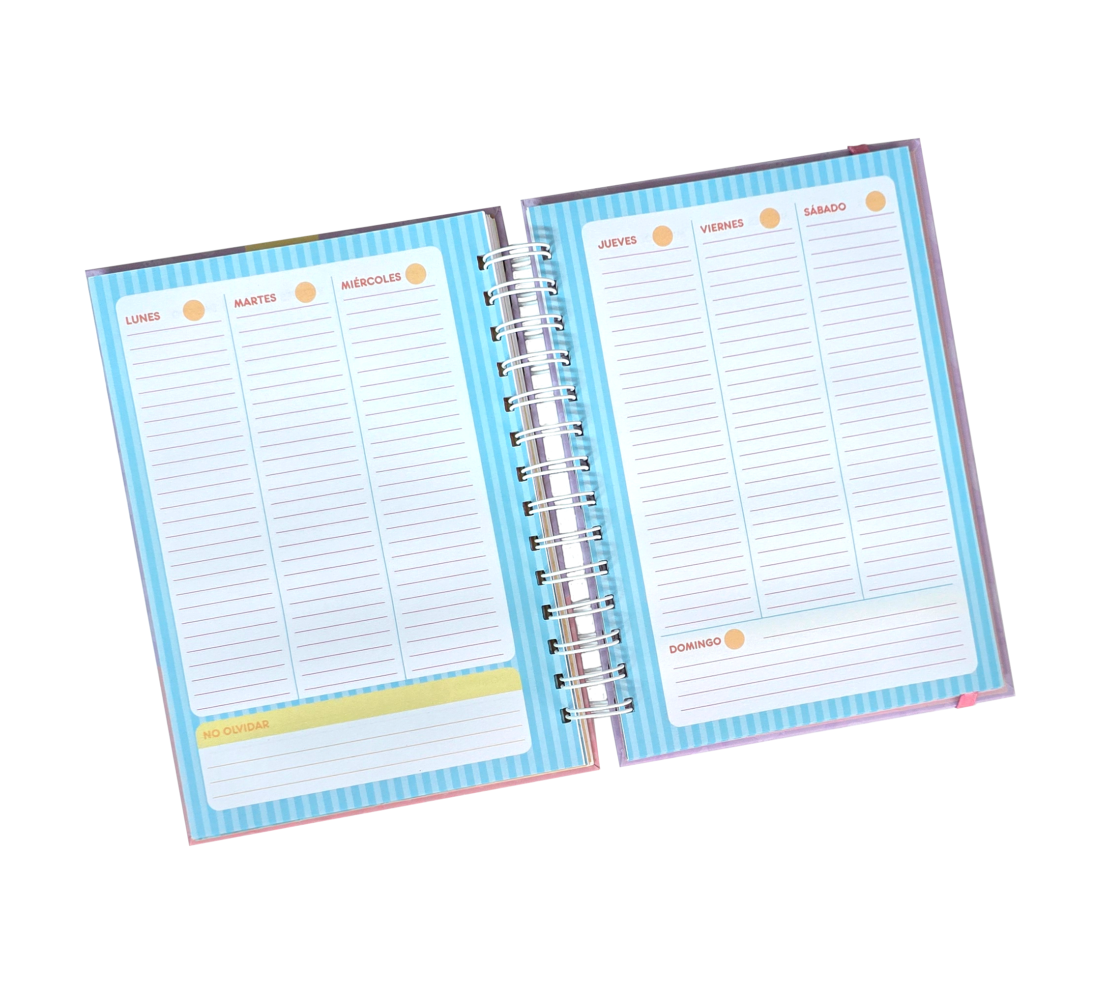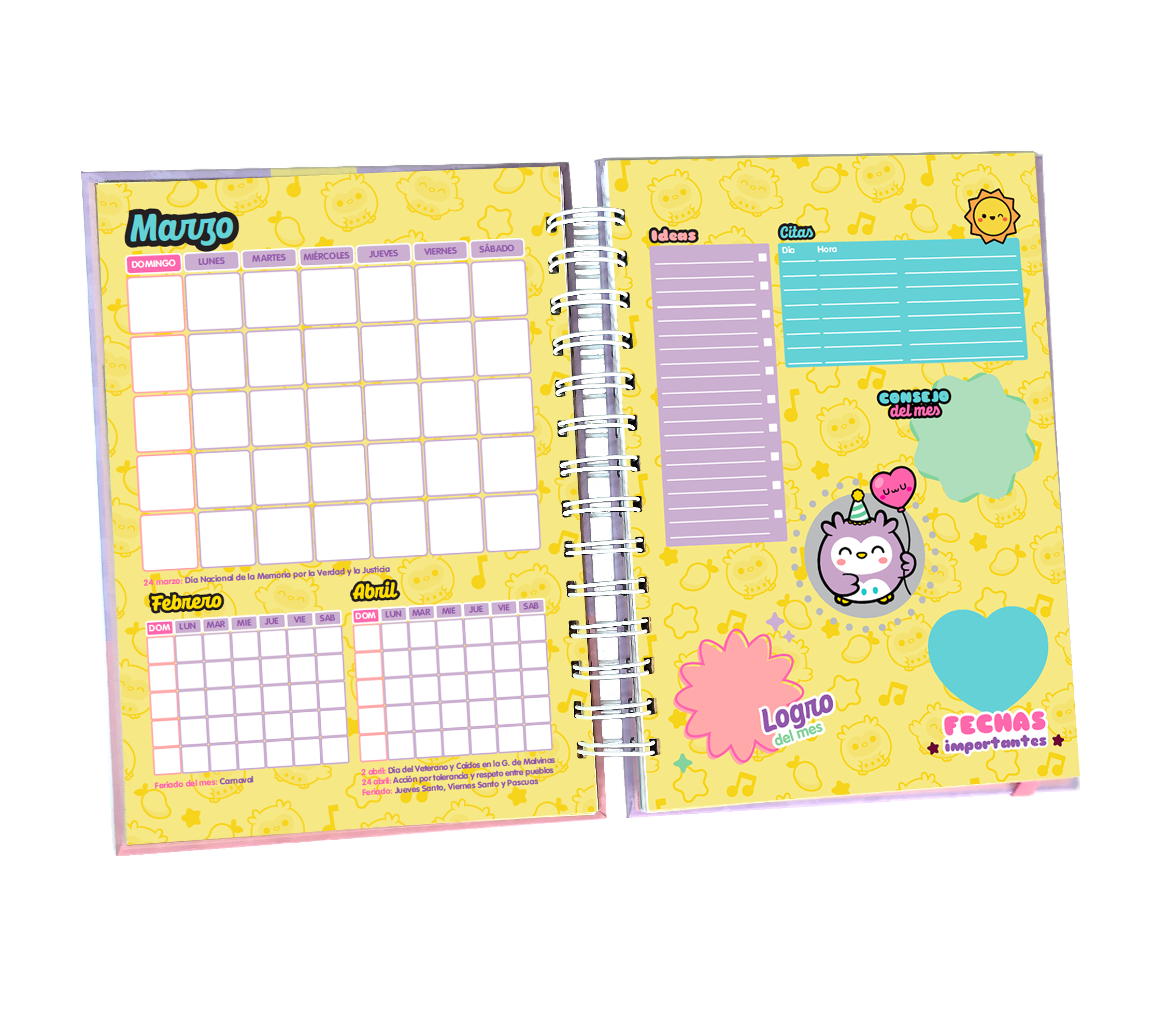 Incluye: Agenda perpetua 365 + 2 planchas de stickers modelos 01 a 06 a elección (vinilos transparentes UV – Resistentes al agua)